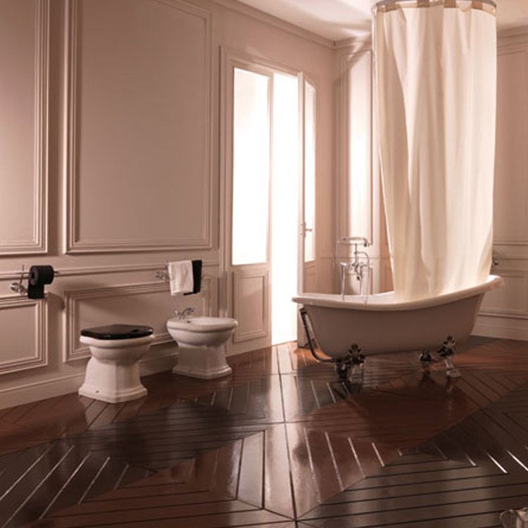 Retro': A classic and refined line of bathroom fixtures. Created for classic settings, Kerasan's Retrò line is especially loved by hotel and thermal spa designers because its lines are able to recreate the charm of the "Belle Epoque". For the same reason, it has also been widely used in the restoration of farmhouses, and holiday farm facilities (agriturismi) ... turning back time with a ceramic series that has an appropriate quality/price value.