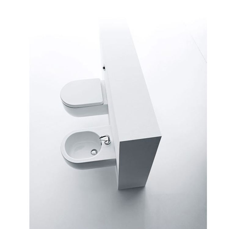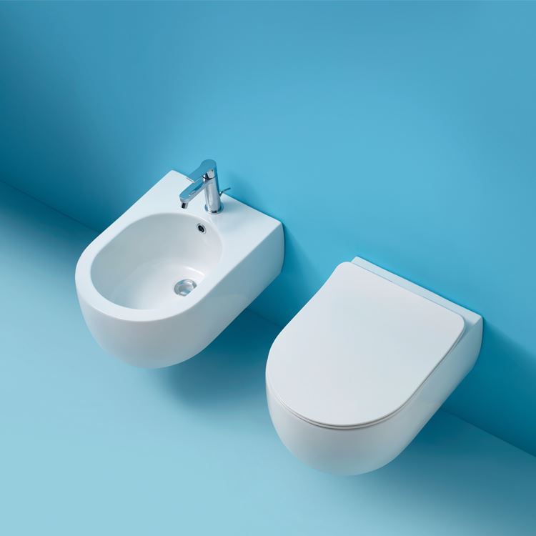 Kerasan Flo. Slightly rounded shapes, simple and timeless, characterised by the perfect oval shape which defines the washbasins and the profiles of the toilet and bidet.