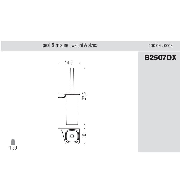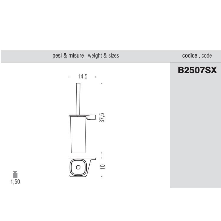 Brush holder Alizé of Colombo Design in brass/Cromall® chrome finishing with natural acid glass. Right or left installation.