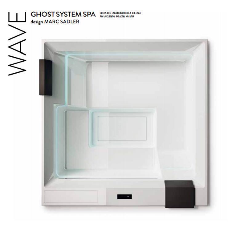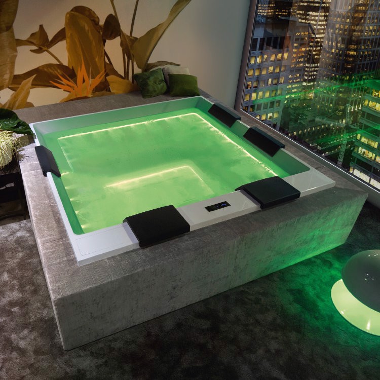 Outdoor minipool with whirpool Ghost system, touch control and automatic water recirculation system. Size: 235x235xh98 cm.