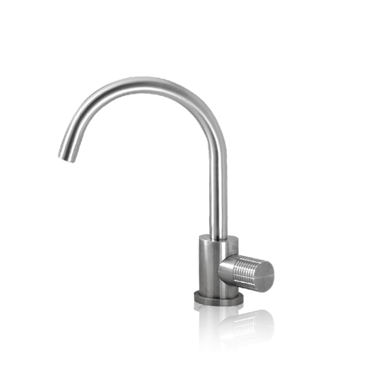 Countertop washbasin mixer with one hole, characterized by a special embossed handle , and a 150 mm long spout available in two heights H.145 mm or H.220mm.