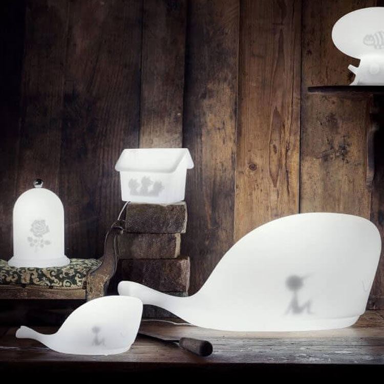 Mobi table lamp with rechargeable RGB Led light. Measures: L.18 P.28 H.12 cm or L.43 P.70 H.30 cm